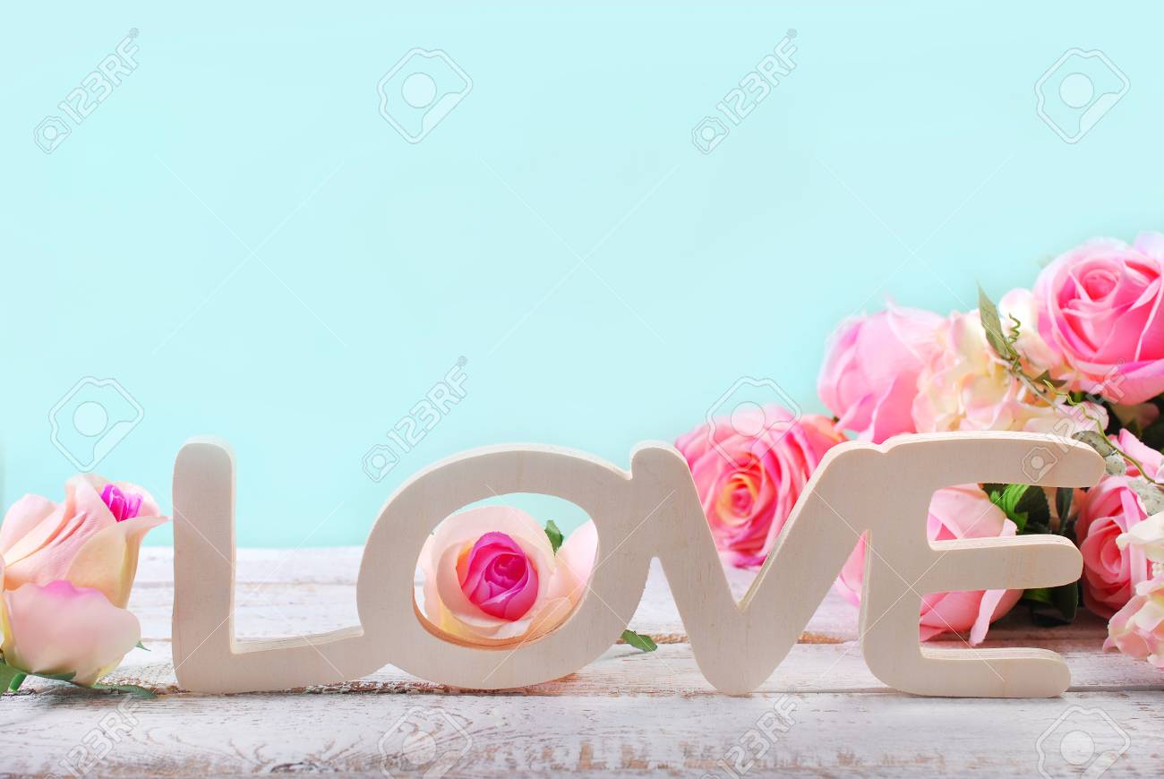 Romantic Love Background In Pastel Colors With Standing Wooden